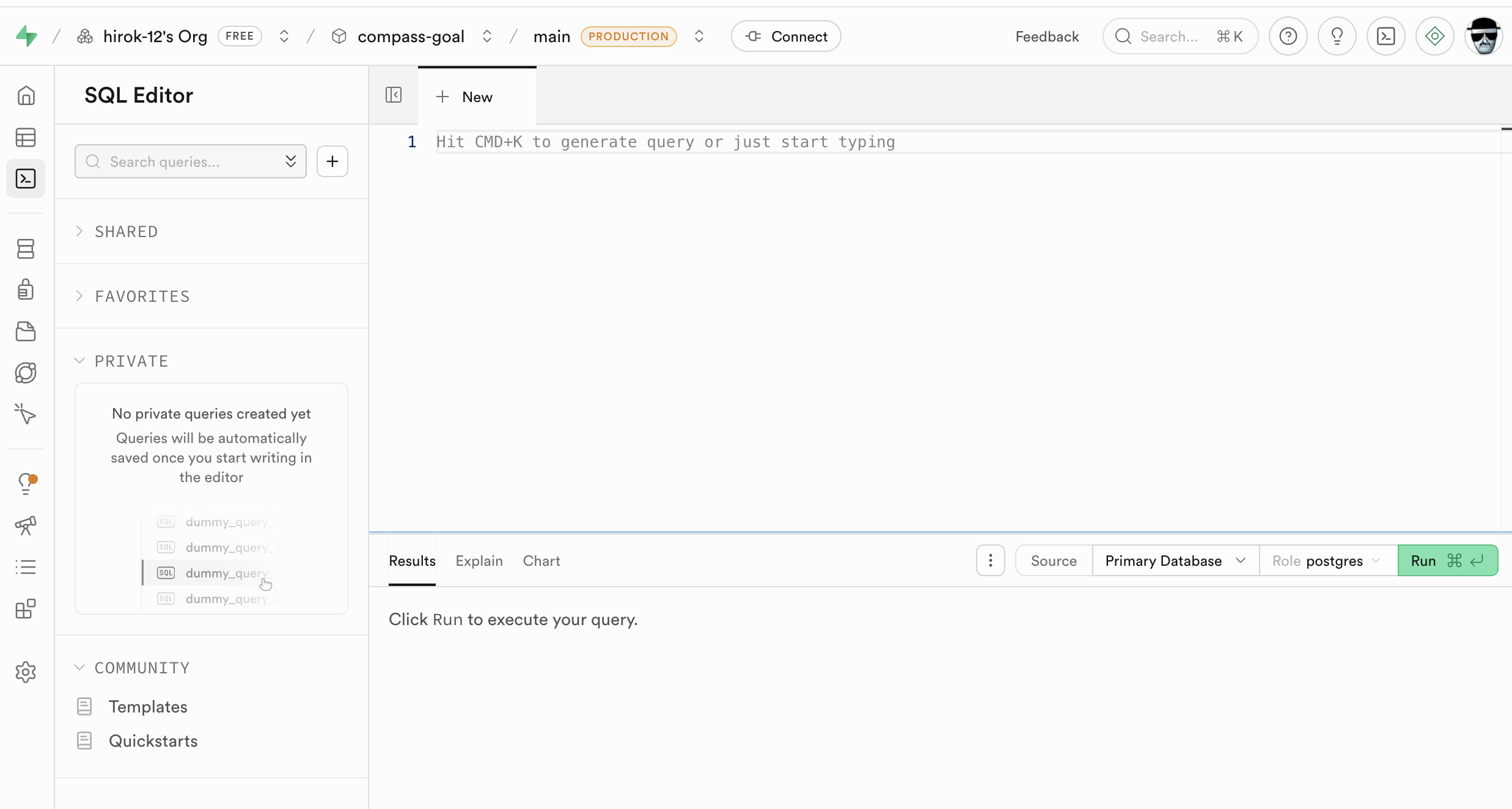 ブラウザ上でSQLを実行できる強力なエディタです。AIアシスタントが搭載されており、「ユーザー一覧を取得して」と自然言語で頼むとSQLを書いてくれます。