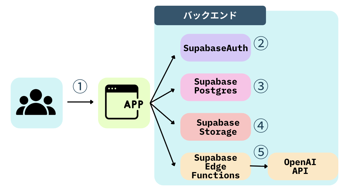 今回は Supabaseサービスを裏側の仕組みとしてメインに利用 しました。