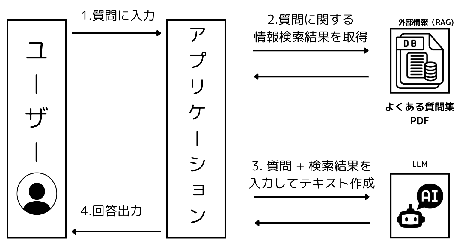 - 最終的に、LLMが生成した答えをユーザーに返す。
