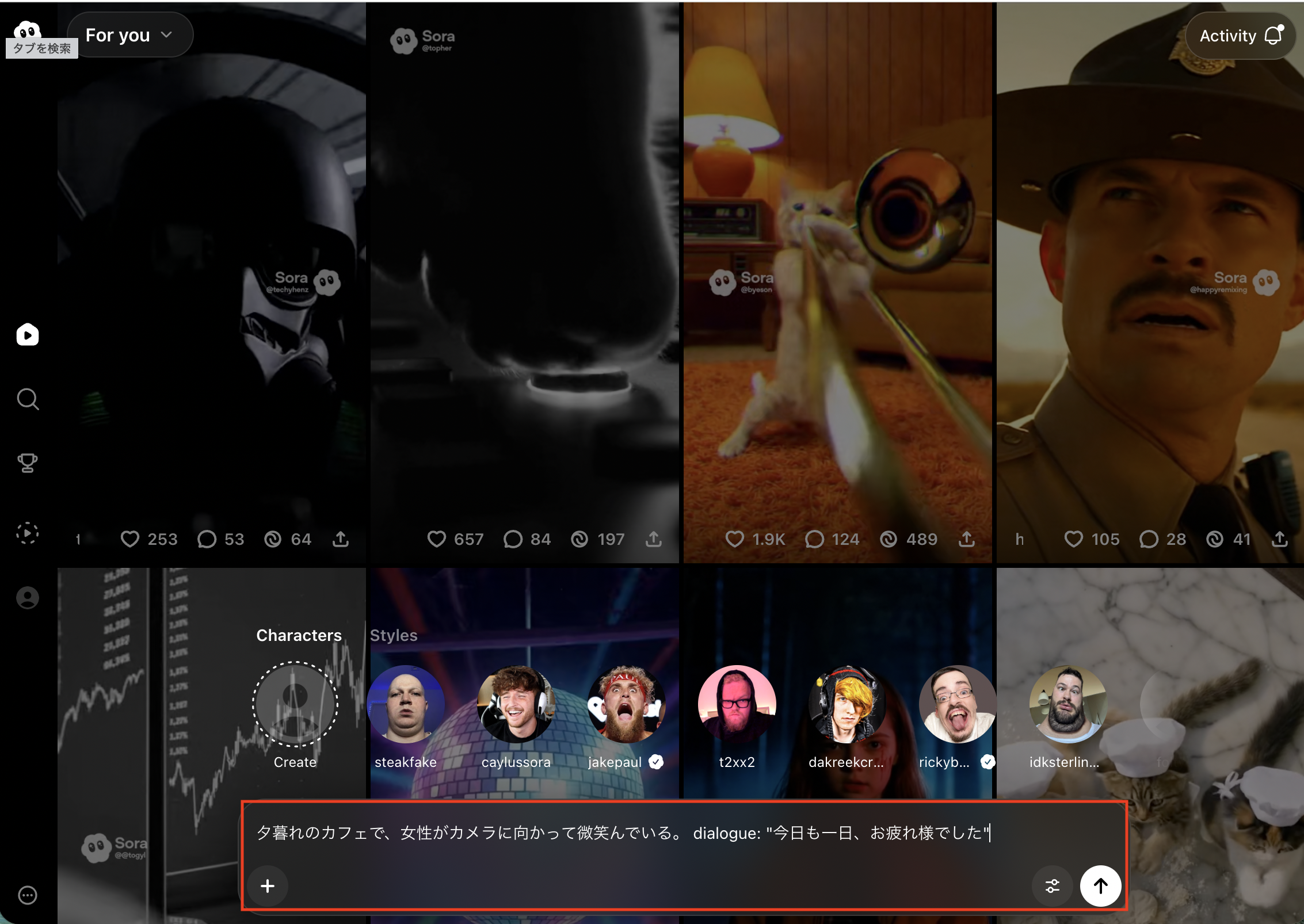 Soraを使って音声付きの動画を生成する方法は、実はとても簡単です。テキストプロンプトを少し工夫するだけで、音声をコントロールできます。