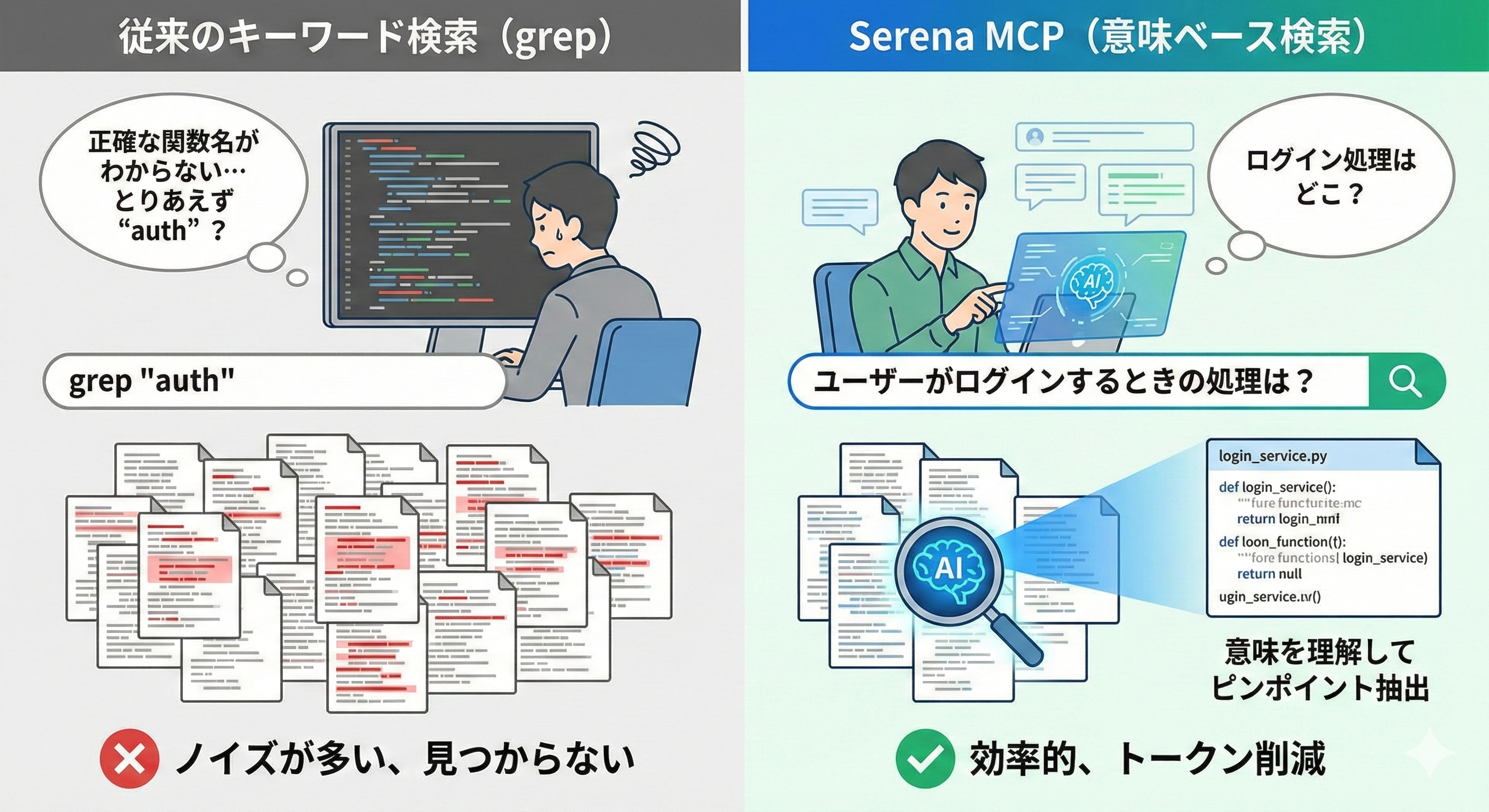 Serena MCPは、コード全体をセマンティック(意味ベース)に検索できるMCPサーバーです。