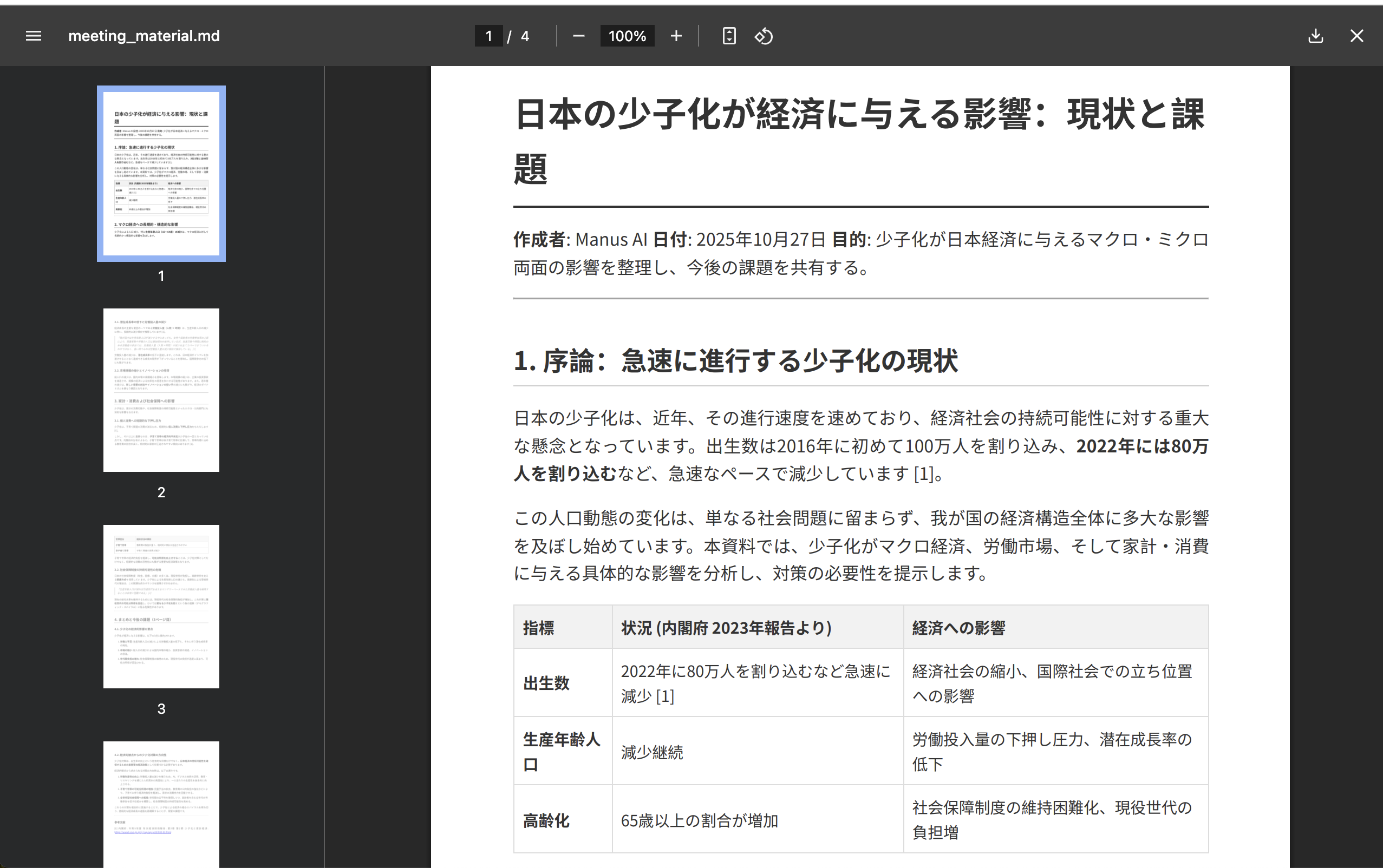 - PDF形式で日本の少子化についての会議資料を作成してくれました!すごい....