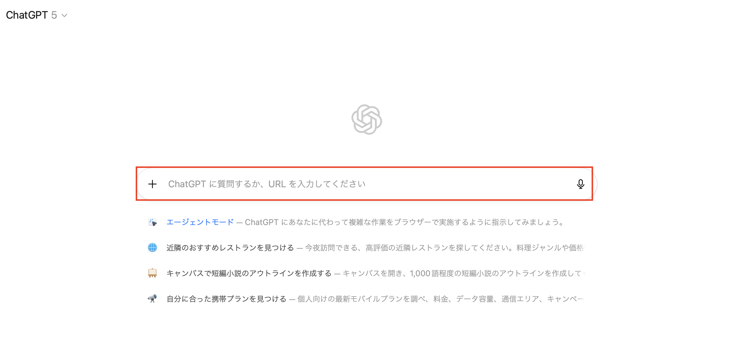 ログイン後のトップ画面には、「ChatGPTに質問するか、URLを入力してください」 と表示されます。