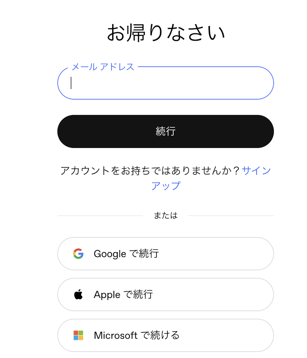 まだアカウントを持っていない場合は、画面下部の「サインアップ」から新規登録しましょう。