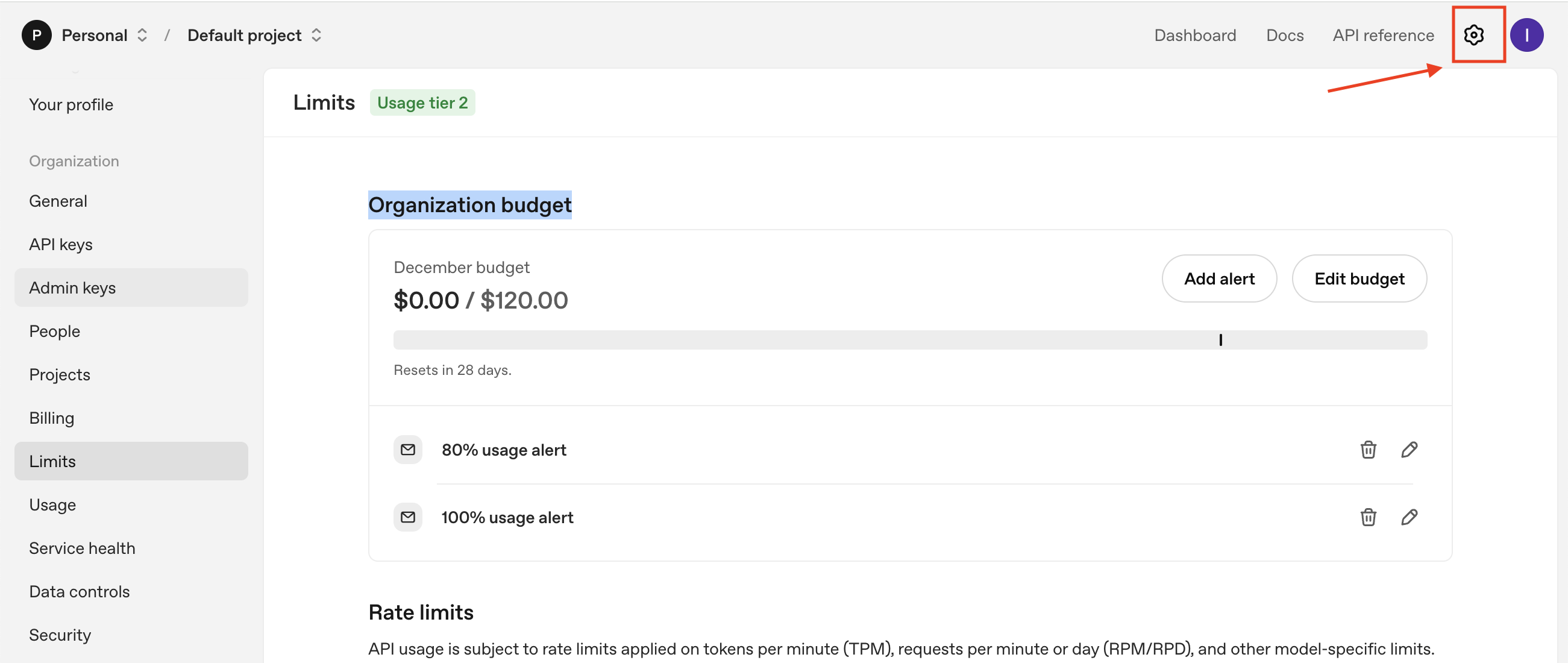 Gemini APIと異なり、OpenAI APIは設定が非常にシンプルですが、場所が少し分かりにくいのが難点です。