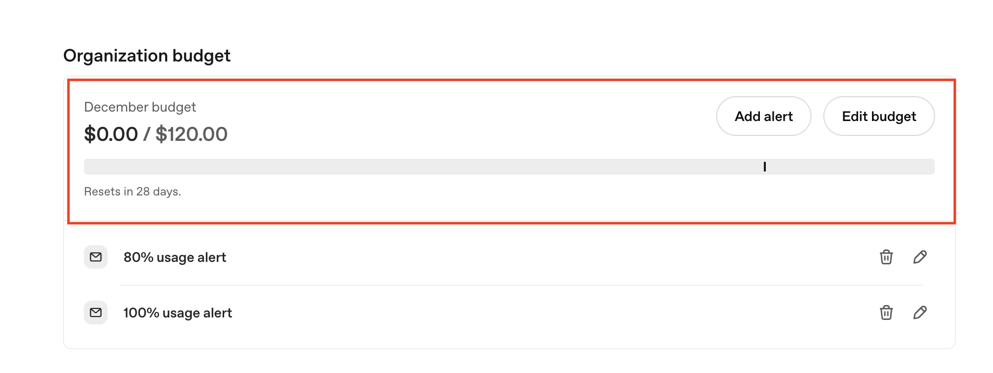 4. 画面中央にある 「Organization budget」 という項目を確認します。