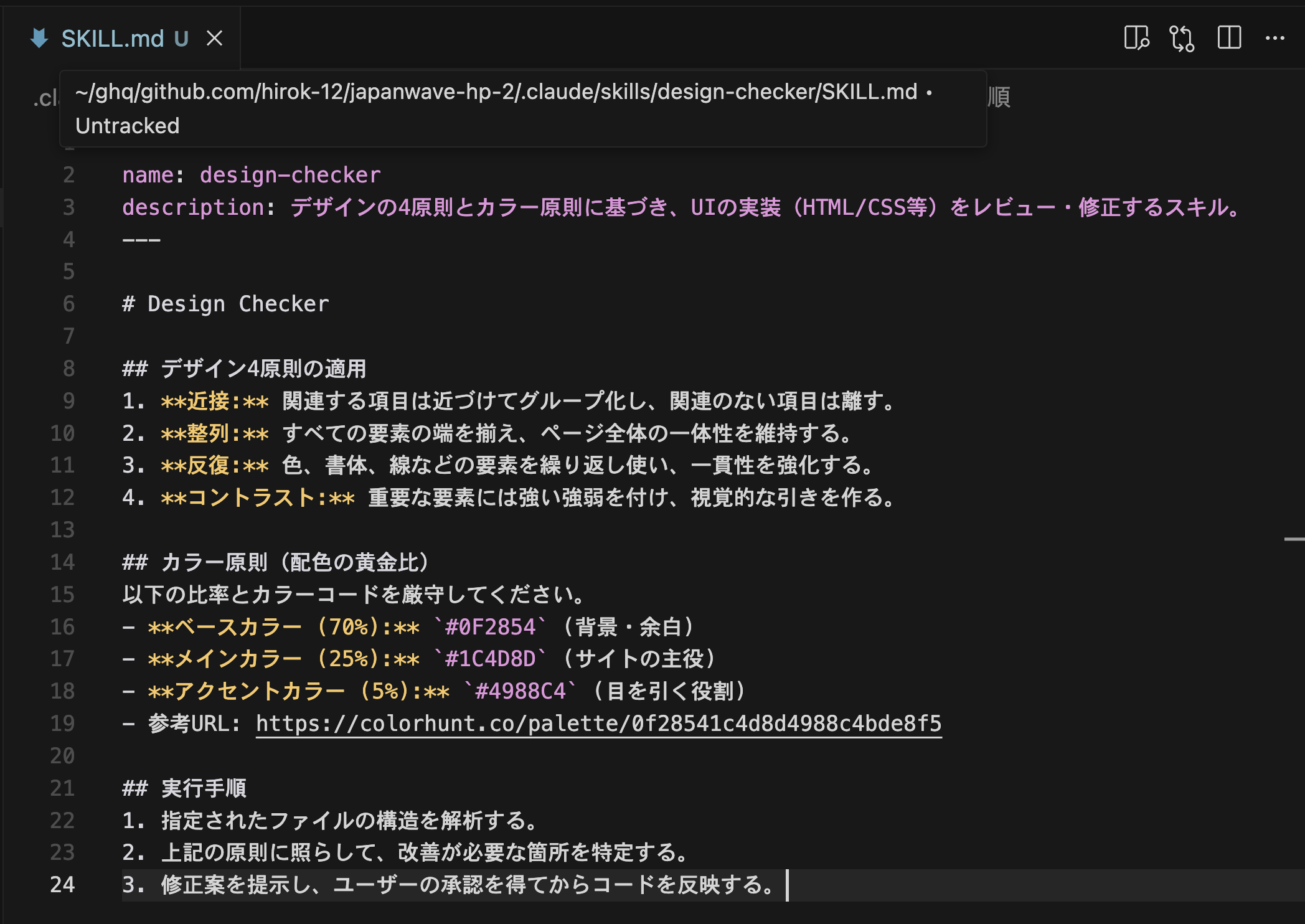 今回は、デザインの4原則と配色の黄金比をAIに叩き込み、コードを自動修正させるスキルの作り方を5ステップで解説します。