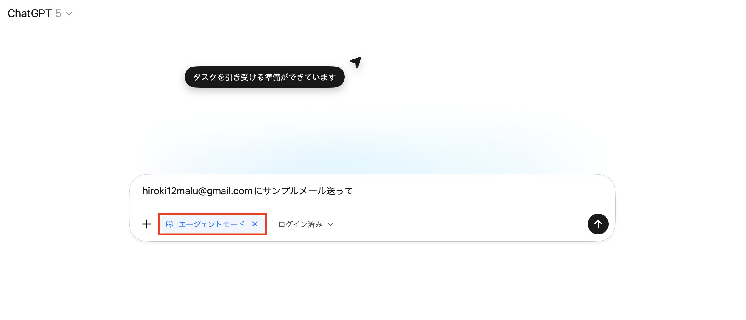 ここでは、実際にChatGPT AtlasのAIエージェントモードを使って、Gmailでメールを送信する流れを画像付きで紹介します。