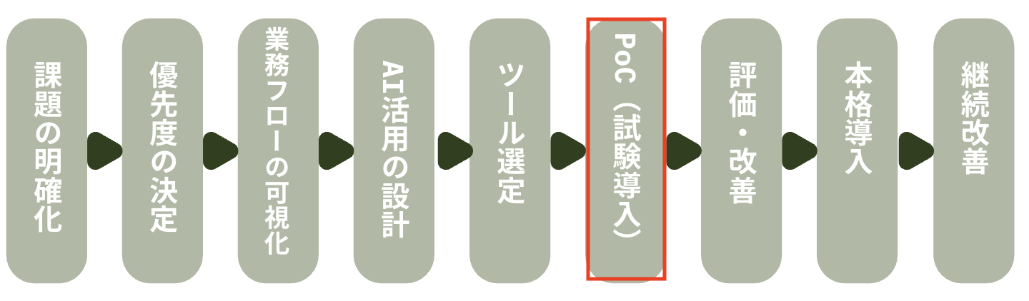 AI導入を成功させたい企業ほど、丁寧なPoCを行い“勝てる流れ”を作っています。