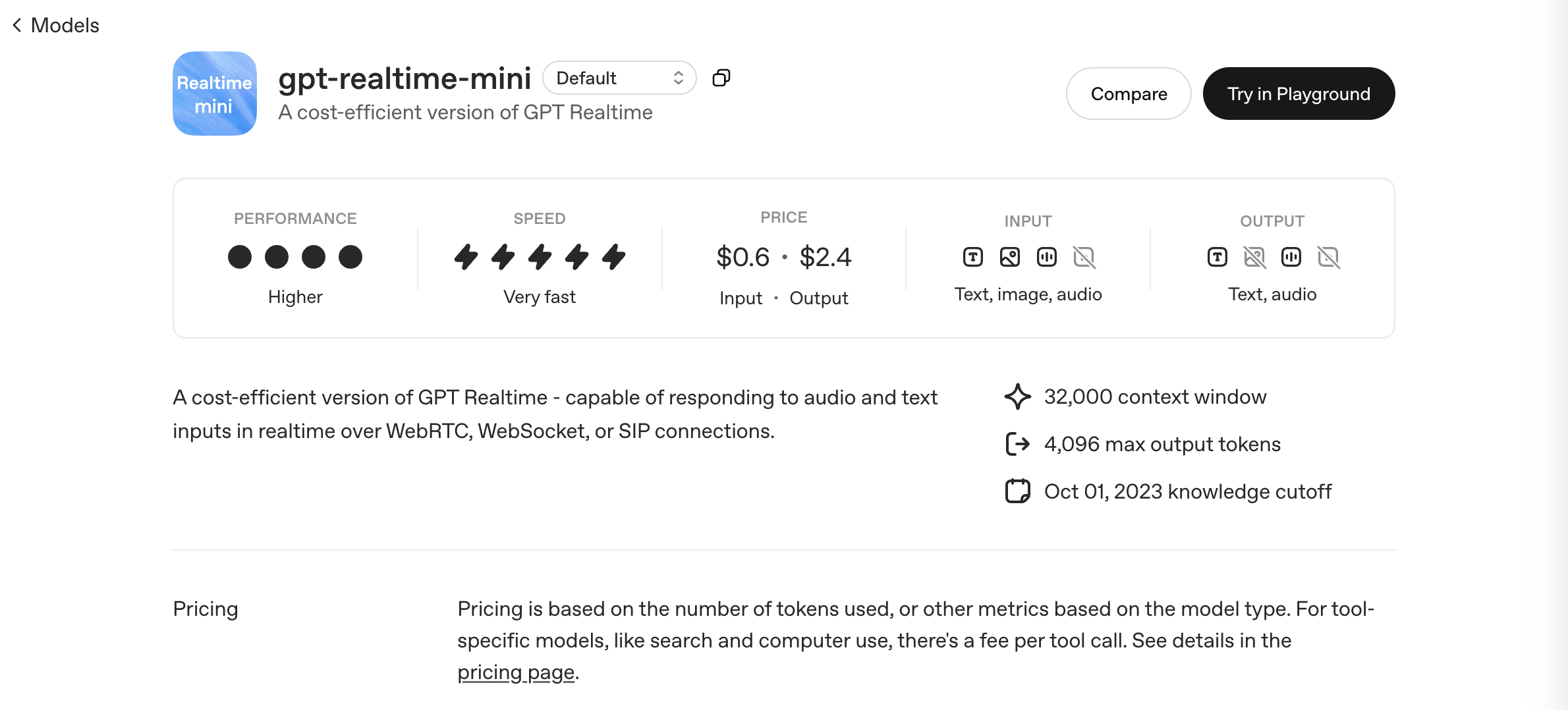 (公式ドキュメントにも “realtime” という命名が示す通り、リアルタイム性を重視したモデルである旨の説明があります) OpenAI Platform